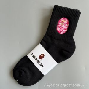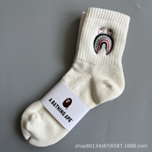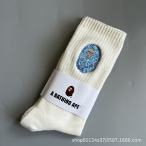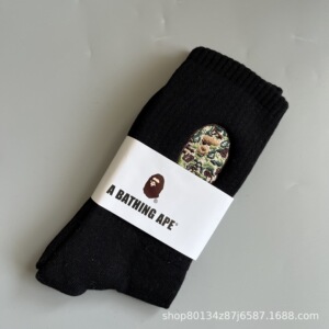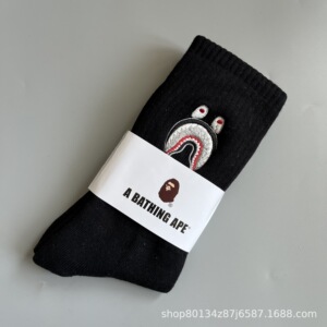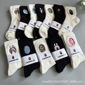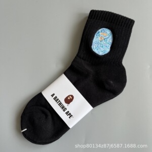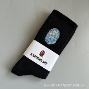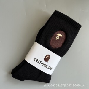 新品bape猿人头刺绣毛巾底男女运动高筒袜滑板袜日系潮袜一件代发