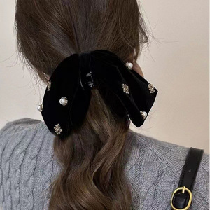 【黑色】多层珍珠蝴蝶结波点抓夹