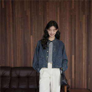 实拍 2025秋季新款港风复古立领休闲百搭牛仔外套女短款夹克上衣