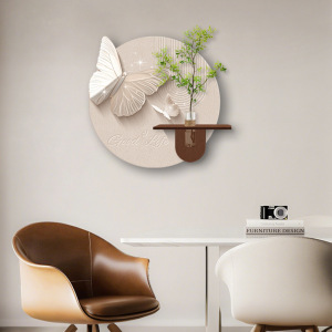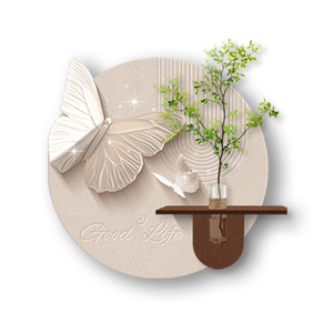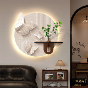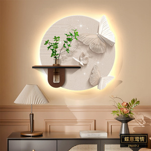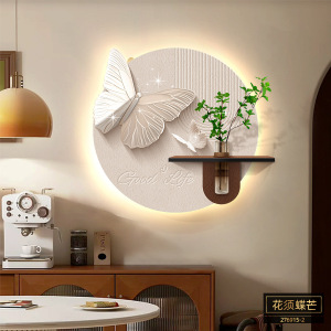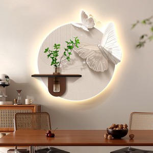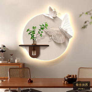 奶油风餐厅装饰画蝴蝶水培绿植客厅挂饰氛围灯画吃饭厅背景墙挂画