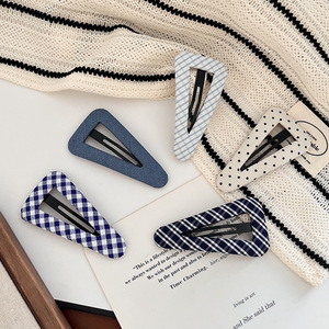 新款韩版简约格纹波点三角夹少女布艺侧边碎发刘海夹儿童掰掰夹子