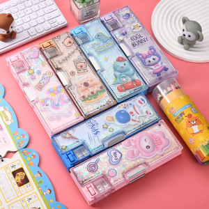 跨境新款创意流沙文具盒小学生儿童卡通多功能带削笔器塑料铅笔盒