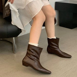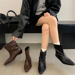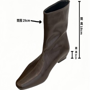 2025秋低跟靴子方头短靴法式气质坡跟短筒靴纯色直筒靴