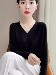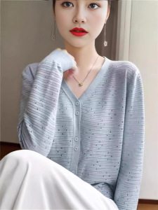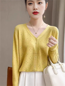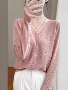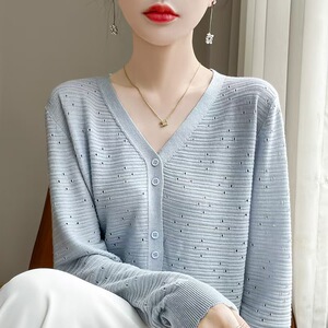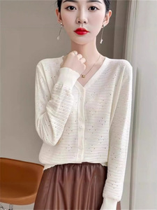 2025镂空针织开衫女V领洋气长袖上衣时尚洋气外套宽松休闲外搭潮
