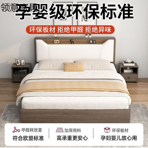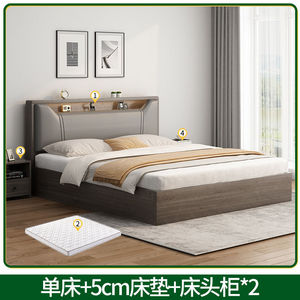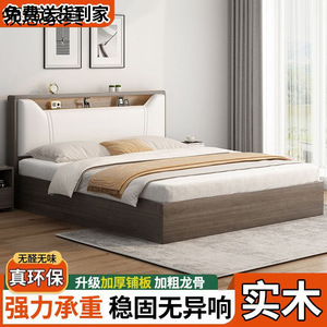 实木床双人1.8x2米主卧现代简约家用1.5米小户型出租房1.2m单人床