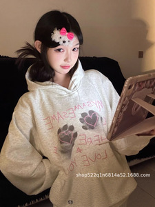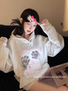 跨境华棉秋冬季休闲印图长袖卫衣女宽松舒适无绳连帽卫衣上衣批发