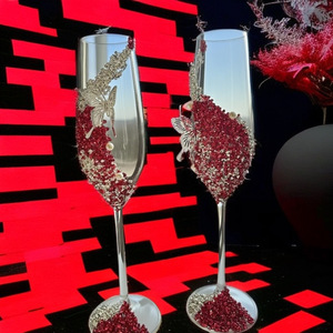 订婚敬酒杯结婚礼碎钻礼物自制敬酒杯手工碎钻敬酒杯感婚礼备贝母