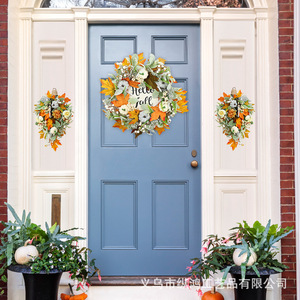 跨境南瓜兔耳叶秋季花环浆果仿真吊篮花圈家居门前庭院倒挂装饰