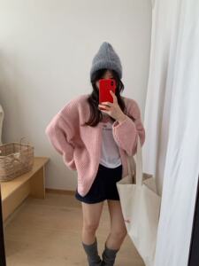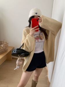 气质慵懒风针织开衫外套女2025秋温柔宽松粗线马海毛毛衣G1457