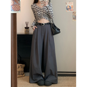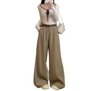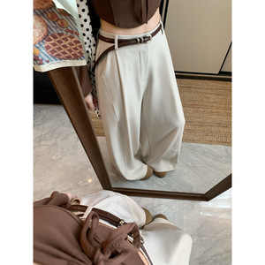 实拍!2025新款松紧腰个性设计感阔腿裤女垂感宽松休闲裤子