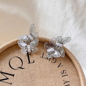 气质银色镂空蝴蝶耳环女设计感小众精致银针耳钉适合夏天的耳饰品