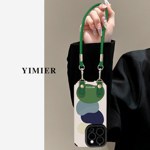 色块皮质挂绳适用苹果16promax手机壳iphone13瞳眼羊皮15硅胶防摔