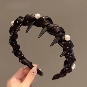 新款褶皱波点蝴蝶结发箍宽版百搭简约头箍高颅顶压发发卡外出发饰