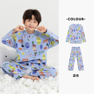 多多家男童家居服套装满印2025新款春秋儿童中大童卡通睡衣两件套