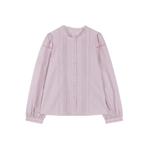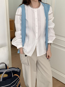 法式蕾丝拼接设计圆领长袖衬衫女秋季新款韩系宽松显瘦气质上衣