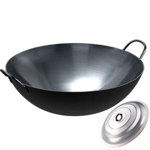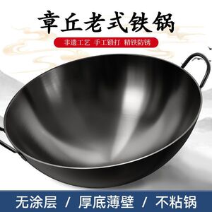 老式无涂层铁锅不粘锅家用炒菜锅章丘大铁锅双耳商用炒锅燃气适用