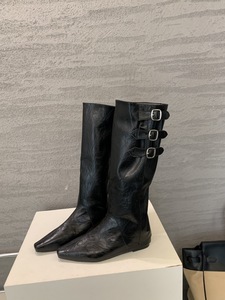 内增高尖头可拆卸长筒西部靴女鞋2025新款春秋不过膝长靴骑士靴子