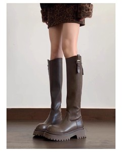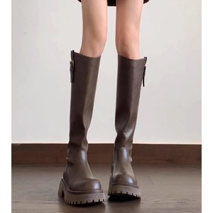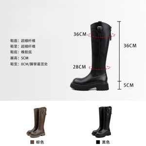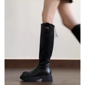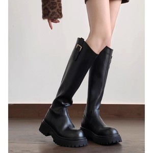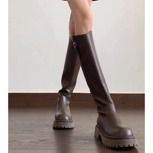 现货~羊皮版2025新款厚底不过膝长靴女小个子增高百搭高筒骑士靴