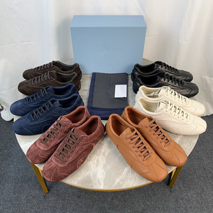 P家真皮德训鞋男 复古方头系带运动鞋低帮休闲豆豆鞋情侣款百搭小