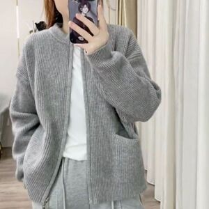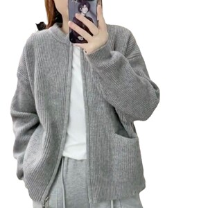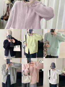 针织开衫女2025秋冬新款韩版圆领毛衣女显瘦双拉链短款小个子外套