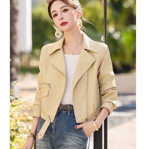 2025春秋新款皮衣外套女短款机车服休闲小个子pu皮西装领夹克