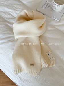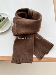 高级100%纯羊毛秋冬韩版简约百搭毛线软糯围巾情侣针织保暖围脖女