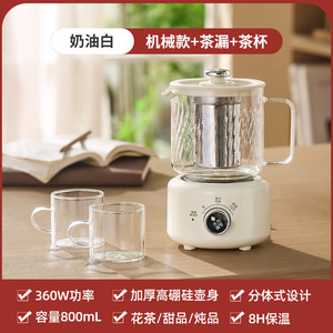 奶白0.8L养生杯【带滤网+2小杯】-手动旋钮款【小火/小火/保温】