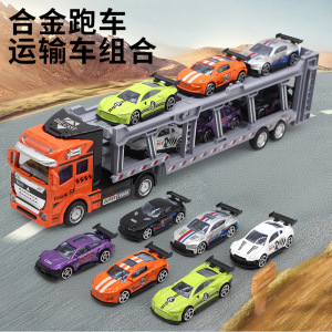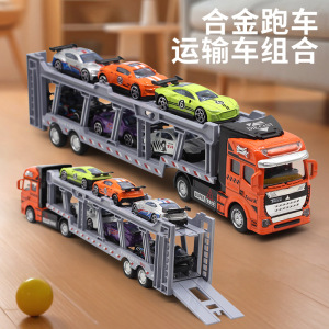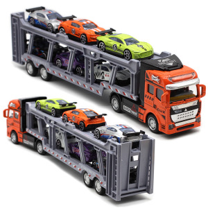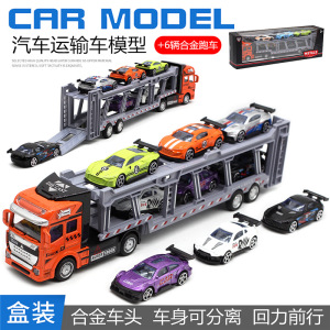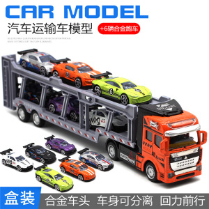 33CM合金双层运输卡车带6个经典跑车套装模型亚马逊跨境新款玩具