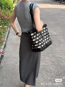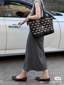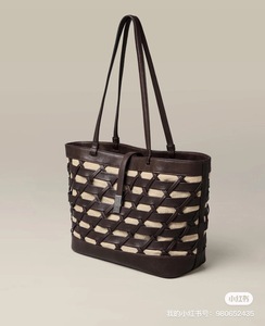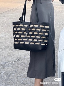 裘真植鞣牛皮编织托特包女大容量2025新款镂空设计单肩手提通勤包