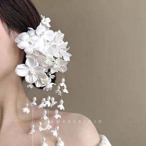 超仙花朵流苏发夹2025新款爆款清冷感侧边夹拍照氛围感头饰发卡
