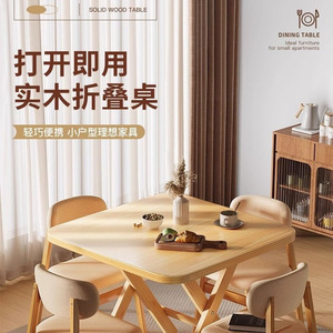 实木可折叠桌子家用餐桌简易便携式饭出租房正方形小户型吃饭夜市