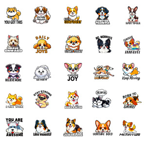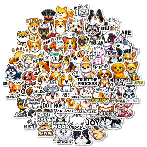 56张跨境新款卡通狗狗文字贴纸可爱萌宠趣味涂鸦笔记本电脑装饰贴