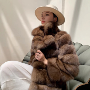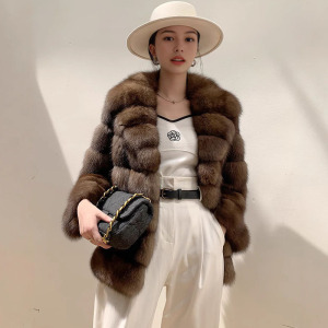 进口俄罗斯紫貂满天星貂皮外套女冬季新款整貂西装领年轻皮草
