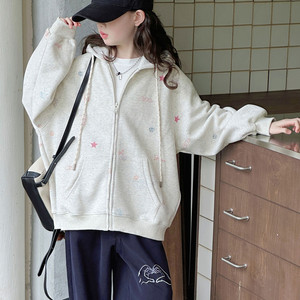 女童外套春秋2025新款洋气中大童宽松休闲上衣儿童装连帽开衫卫衣