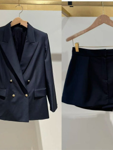 2025早秋新款女装法式时尚翻领双排扣短款西装外套+时尚A字高腰裙