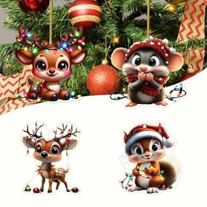 跨境新款亚克力圣诞节可爱小动物包包钥匙扣挂件圣诞树装饰挂牌