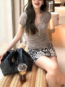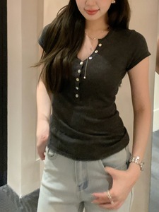 至简主义亨利领短袖t恤女新款夏季修身显瘦上衣