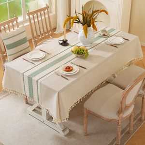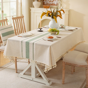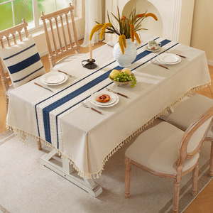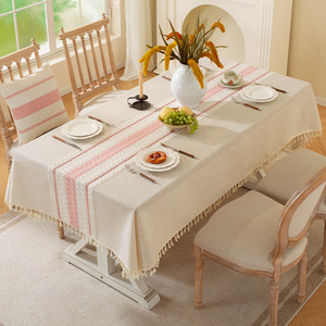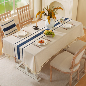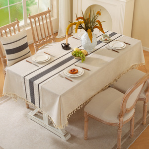 外贸北欧新款拼接桌布简约大气防尘餐厅台布现货批发聚会派对流苏