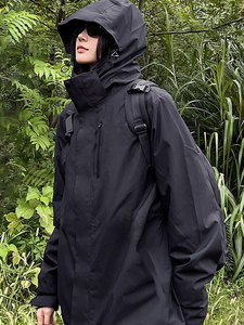 骆铊平替凝夜紫冲锋衣女三合一可拆卸抓绒春秋防风雨登山服外套男