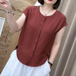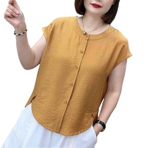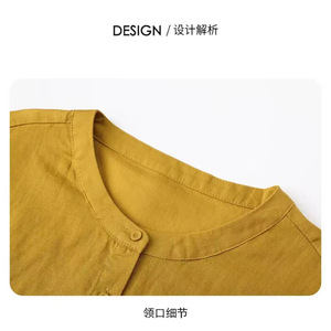 休闲女士宽松短款衬衫恤夏季休闲风纽扣圆领纯色百搭时尚气质