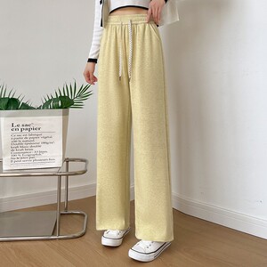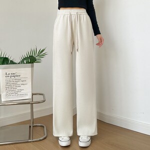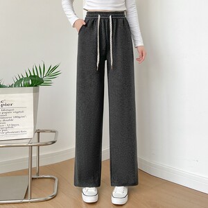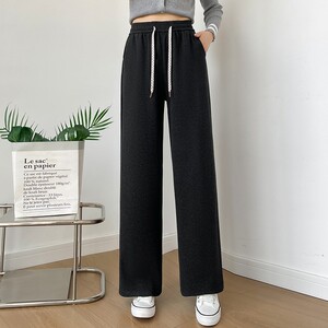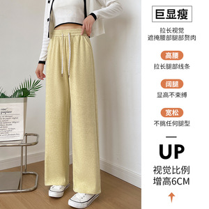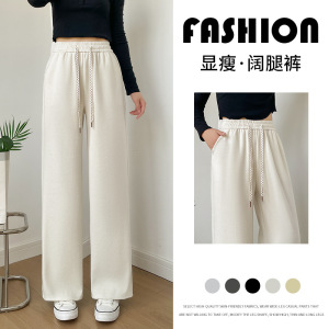 2025秋冬新款高腰抽绳阔腿裤女垂感慵懒风长裤宽松百搭直筒休闲裤