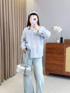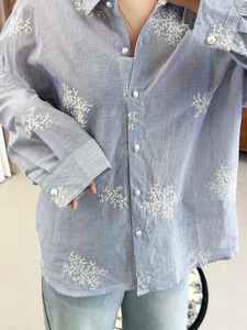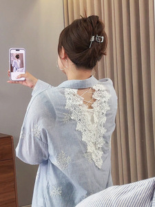 双天2025秋季新款大码胖mm女装蕾丝镂空女士衬衫通勤刺绣衬衣9050