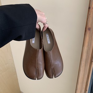 2025秋分趾猪脚单鞋女秋季新款法式复古休闲小皮鞋软平底乐福鞋