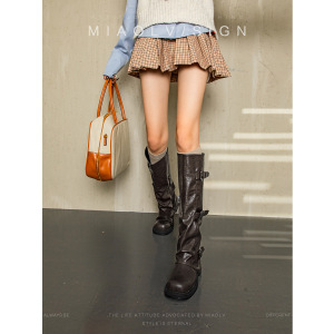 2种筒围~加宽加肥厚底裤管靴女秋小众设计烟筒靴褶皱高筒堆堆靴