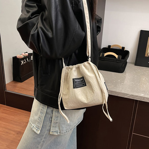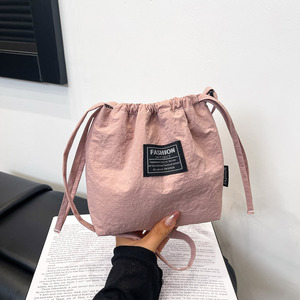2025新款尼龙包撞色小包包抽绳水桶包女潮流休闲大容量单肩斜挎包