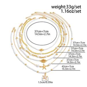 欧美跨境海洋风贝壳松石多层项链 沙滩海星串珠necklace项饰品女