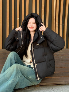羽绒棉服女2025冬新款爆款小个子连帽宽松休闲加厚面包服棉衣外套
