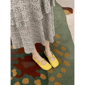 羊皮版~葡萄妈同款扭结小金扣苹果头软糯平底单鞋女浅口玛丽珍鞋