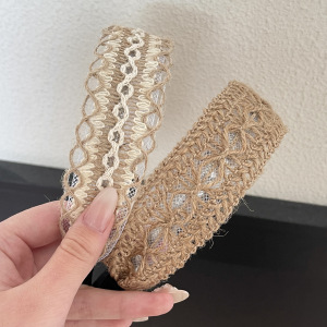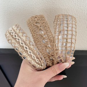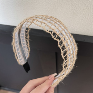 度假风草编宽边发箍女款波西米亚头箍日常外戴发捆高颅顶洗脸发卡