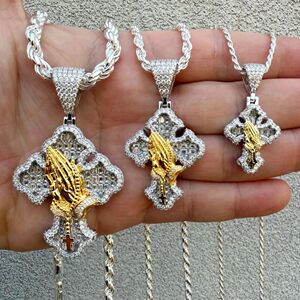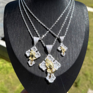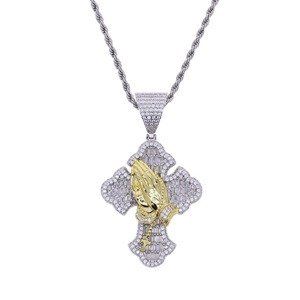 欧美外贸新款双色十字架锆石吊坠嘻哈个性饰品男士吊坠项链批发潮